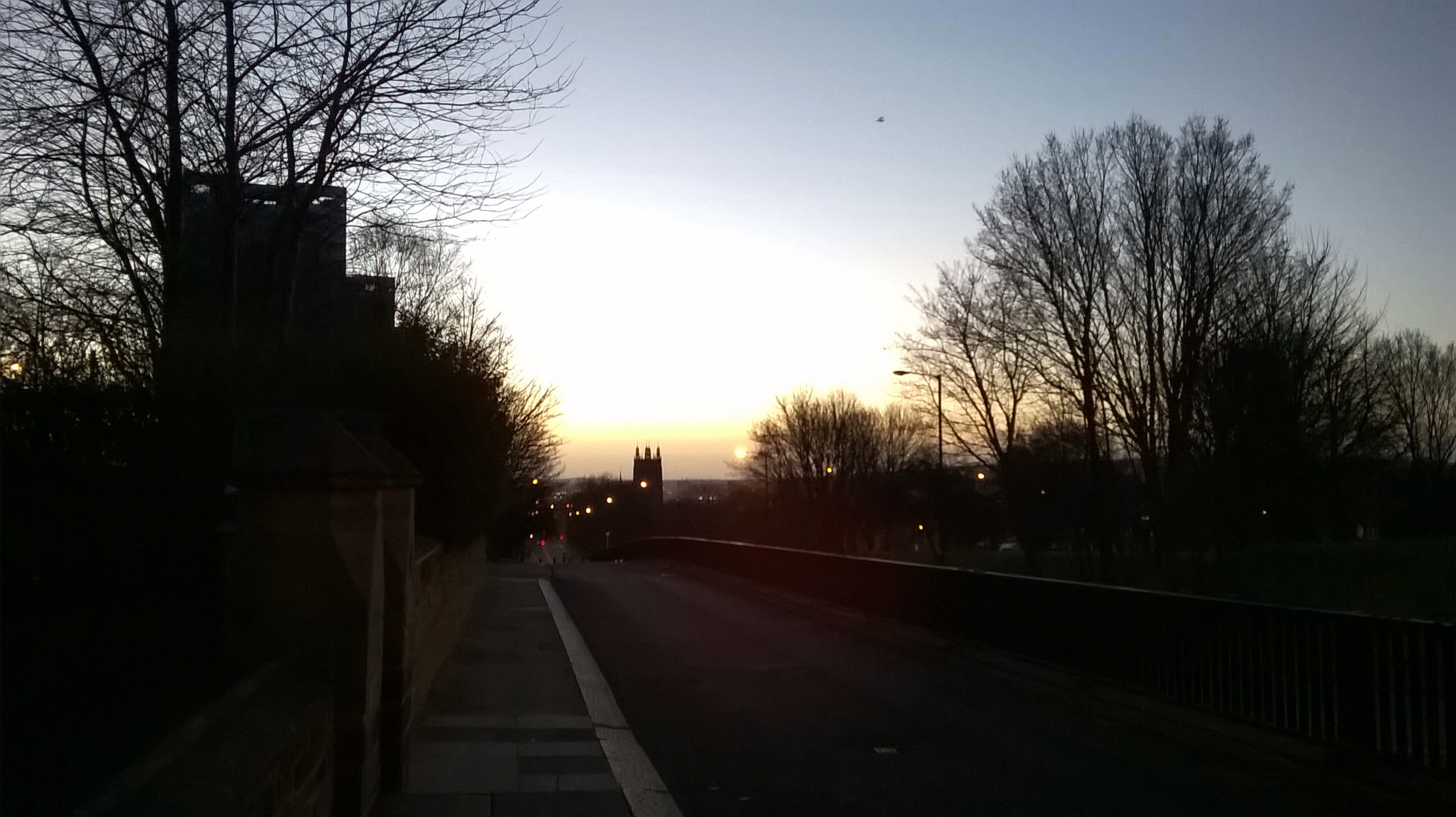 “Reggel 6 óra 45 perc, Newcastle Upon Tyne, utolsó nap. Utolsó pár óra választ el attól, hogy ismét, hogy végre újra Budapesten legyek. Furcsa. Élvezem az életet itt, de mégis csak rám tört az az érzés, hogy jó lenne egy kicsit azért vissza menni. Azért nem ez az egy dolog van, ami fura a mai napban, hanem az is, hogy most utoljára sétálok le, ezen az úton, ahol annyiszor kellett, mikor nem volt bérletem, valamelyik reggel. Így tehát, ha azt vesszük nosztalgiázom egy kicsit, amikor tudom, hogy ez az utolsó napfelkelte, amit innen nézek végig. Hideg van egy kicsit, körülbelül két fok lehet, de ezt a napot már most élvezem, és még szinte el se kezdődött. Hiszen ma egy kicsit búcsút intek Newcastle-nek, és hamarosan újra a barátaim, és a családom körében leszek.”