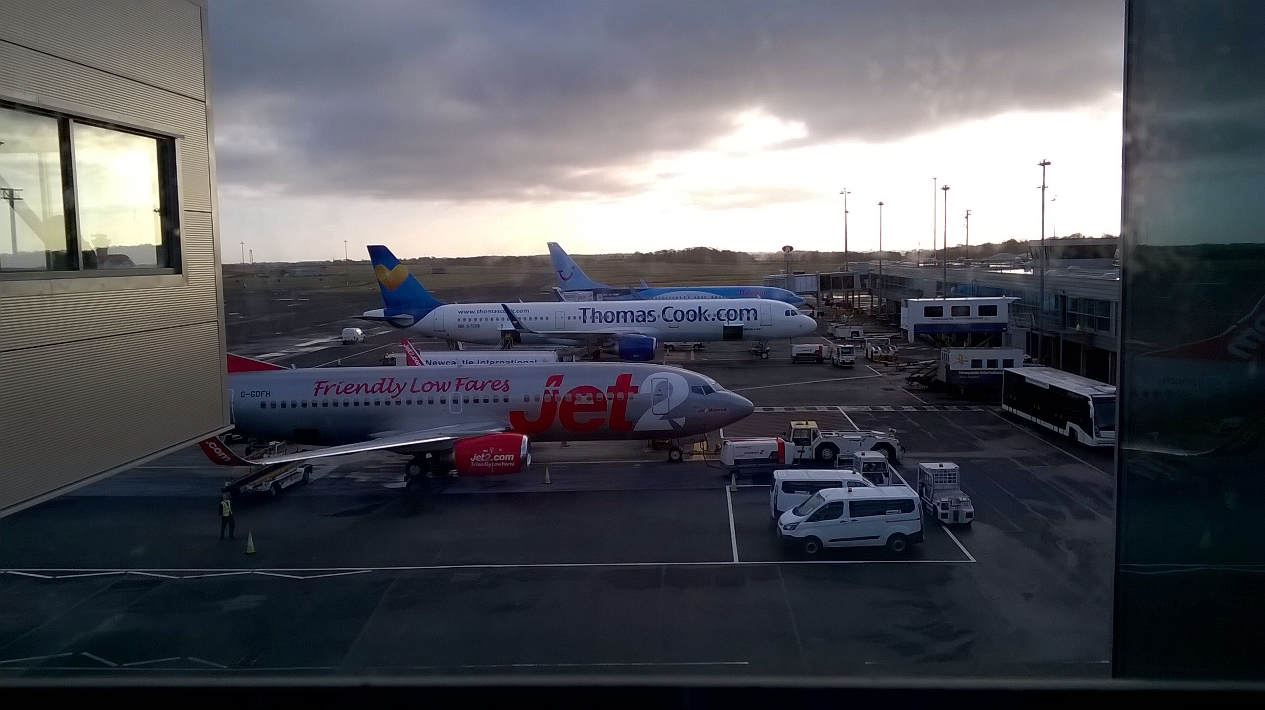 Végre a reptéren. Szerencsésnek mondhatom magamat, hogy a Newcastle-i reptér, nem olyan nagy, mint a legtöbb nemzetközi repülőtér Európában, különben nehezen tudnám elintézni a check-int, és minden egyebet az elkövetkezendő másfél órában.