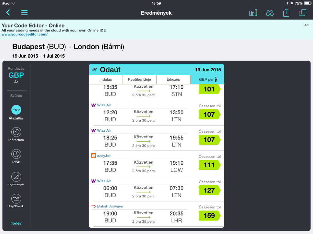 FIGYELEM! Ezek az árak nem a legolcsóbb lehetőségek, azonban a példa szempontjából tökéletesek.