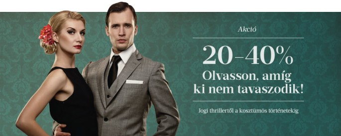Az akció megnevezése: Libri Kedd – Van stílusunk. Az akciós listán szereplő könyvekre 20–40% kedvezményt adnak 2017. április 3. és április 5. között, ami kizárólag a Libri online könyváruházban vásárolt könyvekre érvényes.